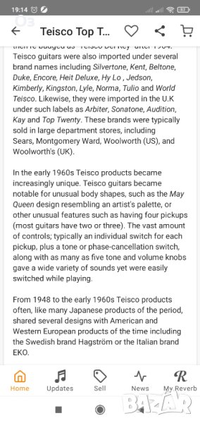 Модела е от 60те години. Страшно прилича на Teisco top 20, най-вероятно е и със същото звучене и хардуер, но има едва забележима разлика в главата на китарата.