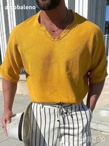 Тъкано мъжко горнище с V-образно деколте и къс ръкав