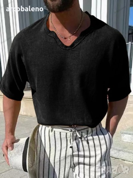 Мъжка едноцветна риза с V-образно деколте, 8цвята