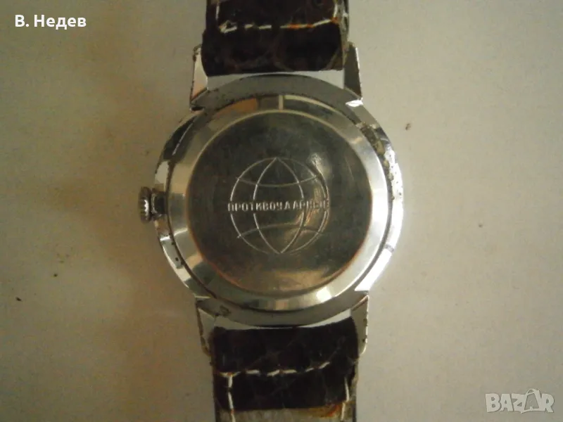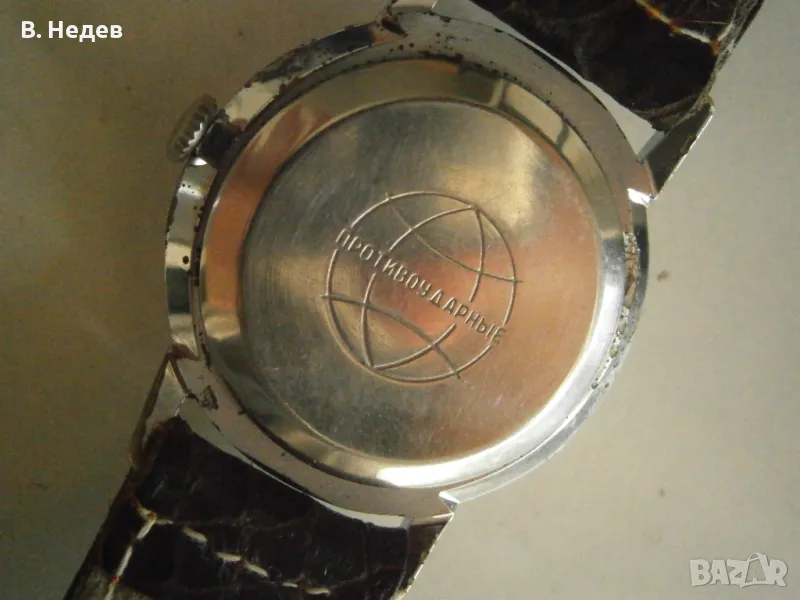 Продаваме този великолепен руски /съветски/ часовник с ръчно навиване, мн. добро състояние, сравнително запазен - циферблат /с малко патина/, цифри, стрелки, печат и машина - моля разгледайте подробно снимките! Часовника е с мн. качествена машина - калибър 2603, със 16 рубинови камъка, противоударен прецизен баланс, секундарна стрелка - "на 6 часа", амортисьор на баланса - действително противоударен часовник. Надеждна и безотказна машина. Вибрации на баланса - 18000/час. Часовникът поддържа точно време за механичен часовник - +35-40sec/ 24 h. Запас на хода - около 40 часа. Амплитуда на баланса - над 250 градуса! Надписите върху циферблата: RАКЕТА, made in USSR. Размери: на касата - без коронката - 34мм, добре запазена; широчина при лъговете - 18 mm; висичина на часовника със стъклото - 8,5мм. Часовникът е кафява кожена каишка...