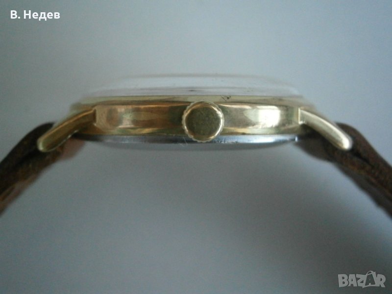 Продаваме този мн. запазен руски часовник. С ръчно навиване, отлично състояние; циферблат, индекси, стрелки, машина - идеални; моля разгледайте подробно снимките! Часовника е с качествена машина - калибър "Ракета"2609, с 16 рубинови камъка, противоударен прецизен баланс, централна секундарна стрелка, амортисьори на баланса и анкъра - действително противоударен часовник. Надеждна и безотказна машина, един от най-популярните калибри на ПЧЗ - Петродворцовия часови завод. Вибрации на баланса - 18000/час. Часовникът е след частична профилактика /сменено е маслото; почистено е изсъхналото и е сложено ново/ и поддържа точно време за механичен часовник – до +30-40sec/ 24 h. Запас на хода - около 44- 45 часа. Надписите върху циферблата: RАКЕТА, 16 jewels, made in USSR. Часовника e с размери - 34 мм диаметър на корпуса, без коронката; от лъг до лъг - 39мм, височина 10,0мм. Интересен ЦБ и индекси - моля обърнете внимание на детайлите. Касата е супер запазена, позлатена - 10 микр. - маркирана!