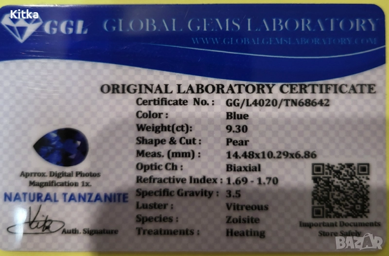 Красив танзанит със сертификат! Размерите са описани в