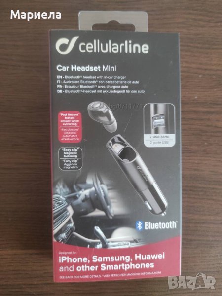 Слушалка Cellularline Car Headset Mini 5495, безжична, микрофон, Bluetooth, зарядно за кола