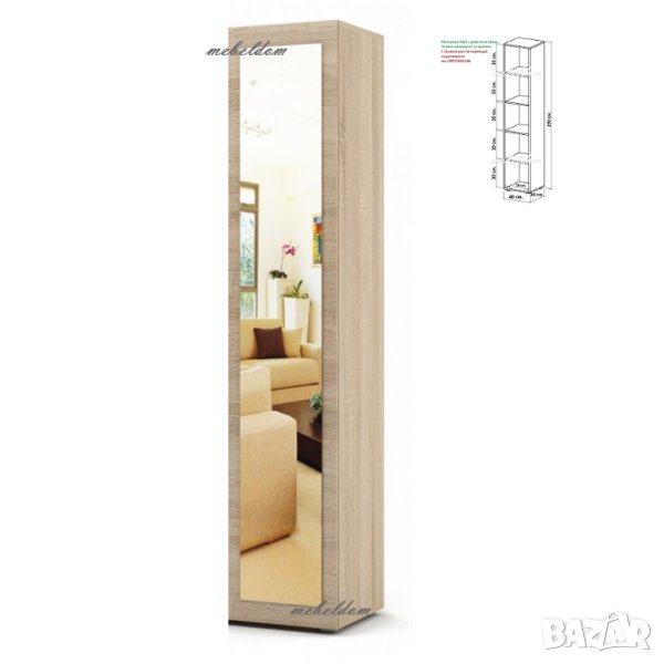 Гардероб еднокрилен с 4 рафта и огледало(код-4545)