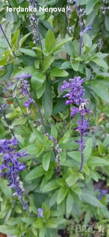 Градински чай (салвия) е градинско, многогодишно, студоустойчиво, вечнозелено храстче.Исползва се чай, в кулинарията и др.Разполагам и със салвия фаринацея(Salvia farinacea) .
