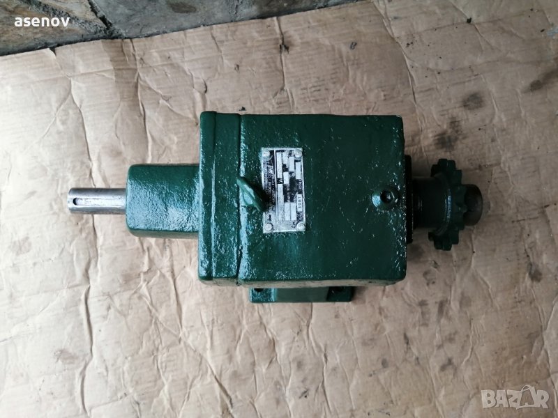 Продавам редуктор с предавателно число 1 :23, входяща ос 28 мм, изходяща ос 45 мм, тегло 32 килограма