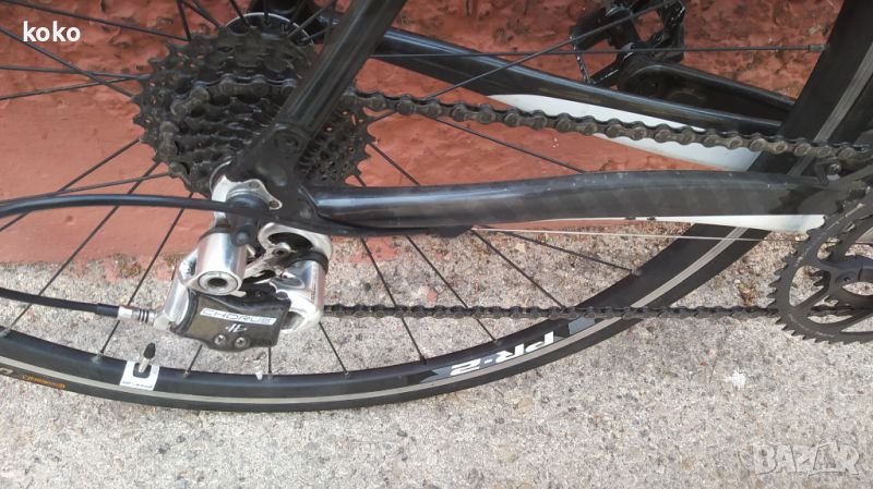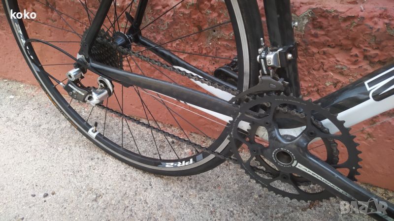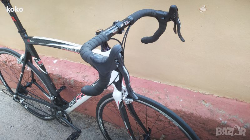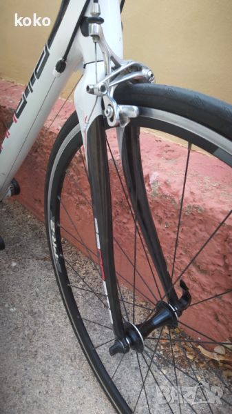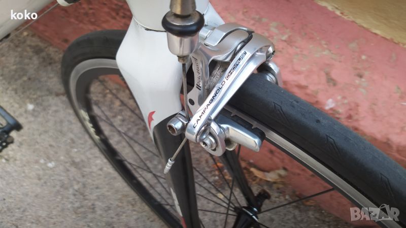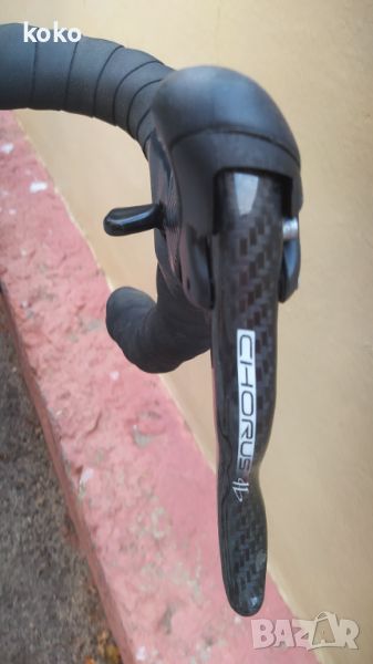 Карбонов велосипед в много добро състояние. С части Campagnolo Chorus 2x11 carbon . Работи перфектно. Тегло 8кг. (С педалите) размер 60х58.5см.