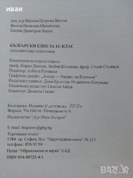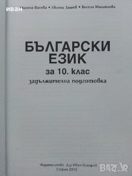 Български език 10.клас задължителна подготовка - М.Васева,В.Михайлова,Е.Зашев - 2012г. → Обява 40774222