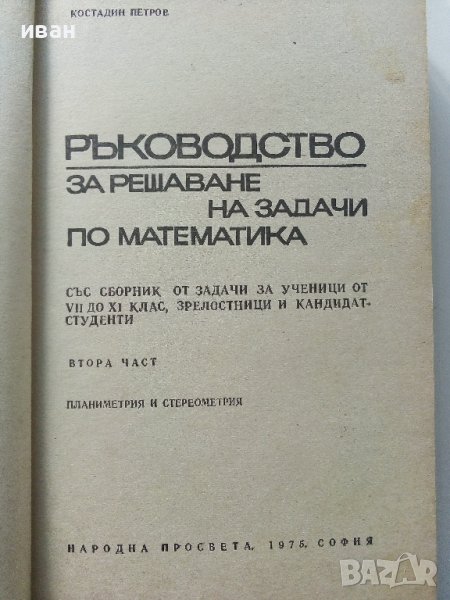 Ръководство за решаване на задачи по математика - К.Петров - 1975г. → Обява 40774298