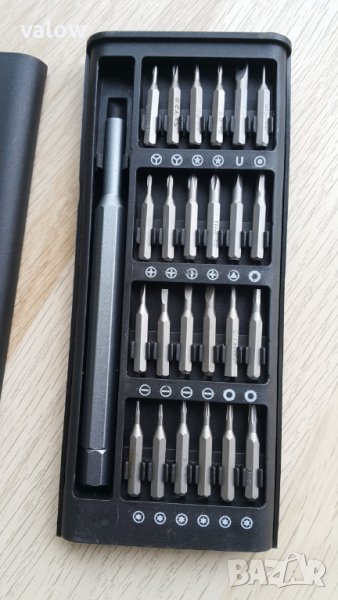 Комплекта включва 24 бр различни битове и магнитна отвертка. Подходящ е за ремонт на прецизна техника - телефони, таблети, часовници, очила, камери, лаптопи, iPhone, iPad, и др.