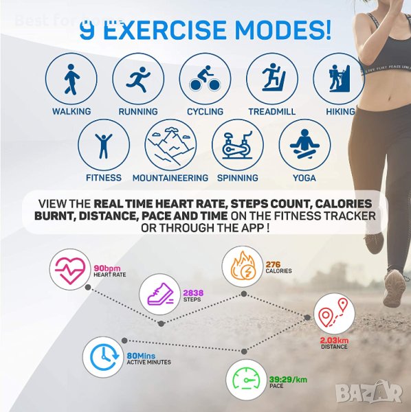 HR Монитор на сърдечната честота Сън IP68 Водоустойчив Активност Фитнес тракер Брояч на крачки Крачкомер Упражнение Часовник за бягане...
