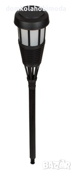 Соларен фенер с акумулаторна батерия и led светлина с пламъчен ефект. Има ключ ON/OFF. Захранван от слънчева светлина, без кабел, екологично чист. Дължина (над земята): 41см Дължина на основата (под земята): 10 см Цвят черен Материал на продукта Пластмаса Диаметър x Височина 7х41 см