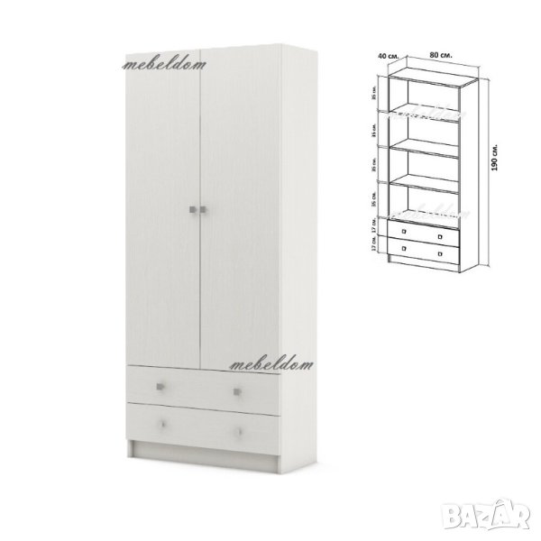 Гардероб двукрилен с 3 рафта и 2 чекмеджета(код-4626)