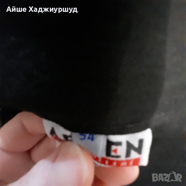 Работен панталон,цвят наситено черен,р-р 54,с гайки и ластик на колана.Два предни джоба с цип,два странични и два задни джоба.