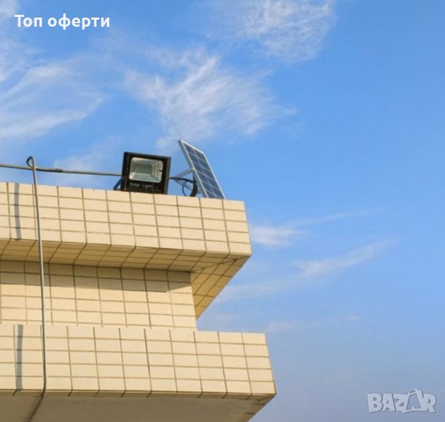 Изключително мощна соларна лампа тип прожектор с ярка LED светлина. Захранва се от слънчева и дневна светлина посредством фотоволтаичен панел. Той преобразува светлинната енергия в електрическа, зареждайки акумулаторна. Щом се стъмни, светлинен сензор активира светлината на лампата автоматично. Прожектора може да осветява в продължение на 12-16 часа в зависимост от режима.Соларния панел е отделен от лампата и се свързва към нея посредством 4.4 метров кабел.