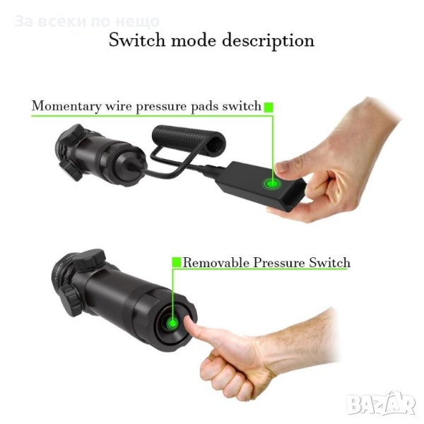 - Прикрепване към: пушка, пистолет, пушка, пейнтбол, еърсофт и др.