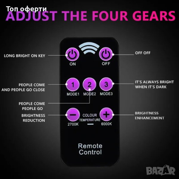 Режим: детекция на човешко тяло + контрол на светлината + дистанционно управление