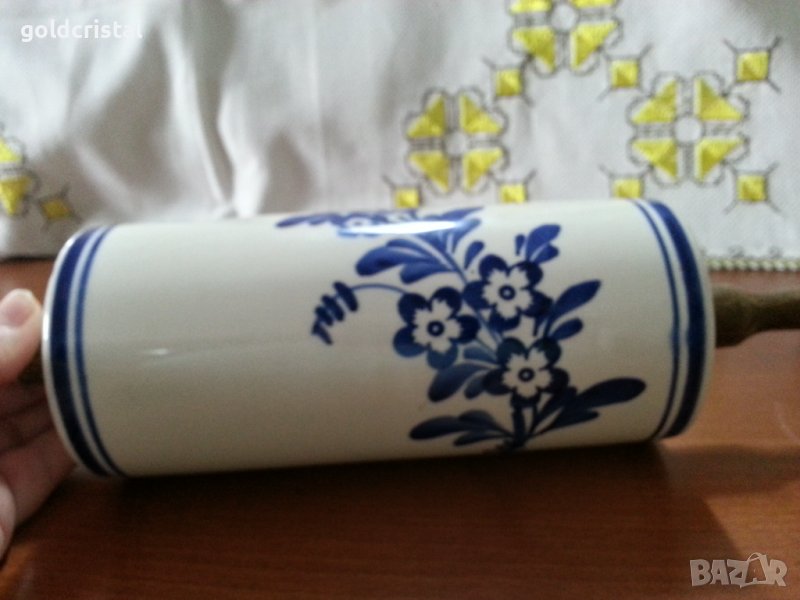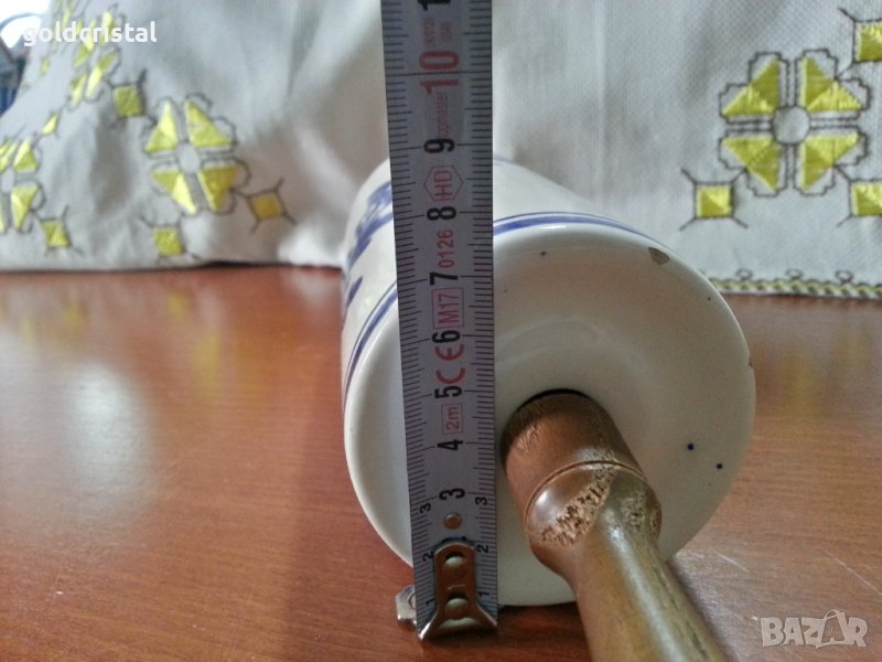 Порцеланова точилка с дървени дръжки ретро арт декор винтидж колекция стари антикварни предмети обзавеждане за дома и семейството подходяща за подарък за ценители и колекционери