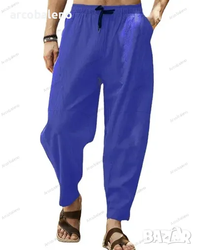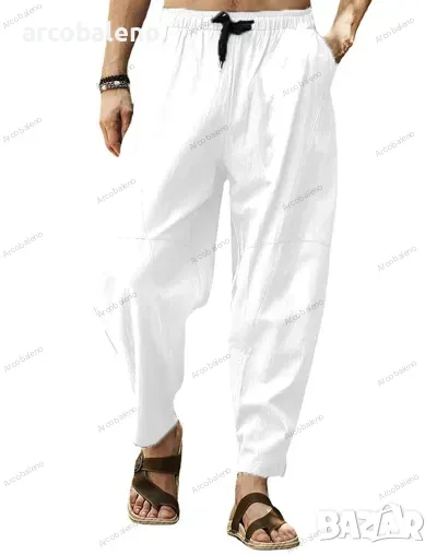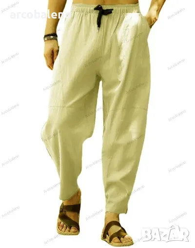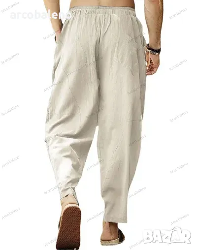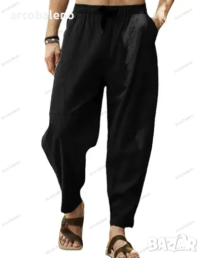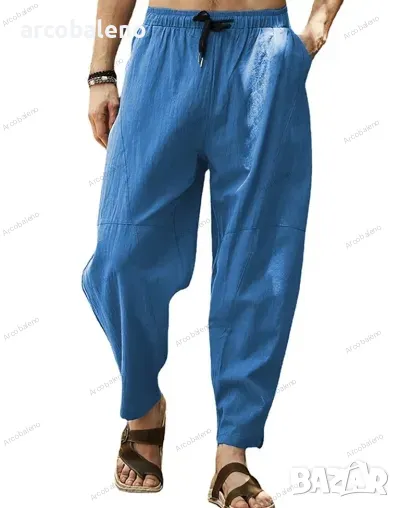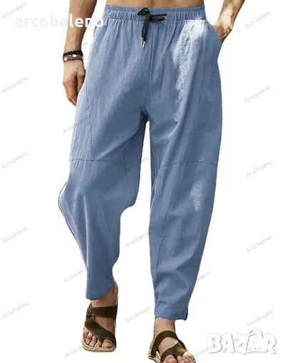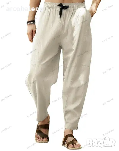 Мъжки свободни хип-хоп панталони тип молив от памук и лен с връзки