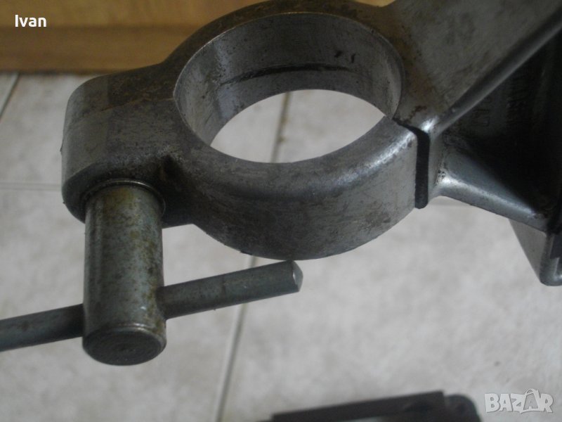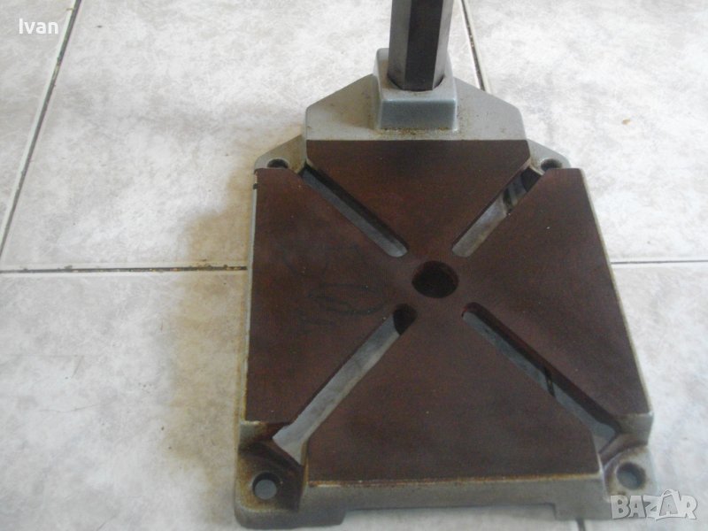 работна маса. Размери на основата - 160 х 160 мм. Масивни метални изцяло въртки за регулация ход и височина. Всички прижуни и механизми на стойкат са в пълна изправност. Масивна плътна метална тръба ф 20 мм. Тегло на стйката - 6,0 кг. Цена 199 лв.