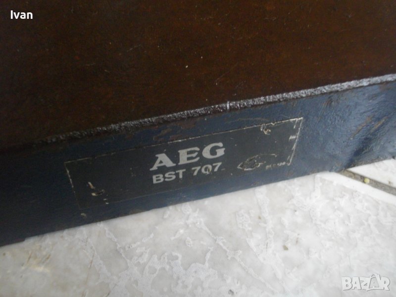 ОПИСАНИЕ на стойка AEG. Марка и модел AEG BST 707, Професионална. Немска. Масивна. Почти нова. Запазен външен вид.Забележка по работно състояние - спукване на кръга за поставяне на машина в стойката ,което не пречи на работата и притягането на поставената машина. Показано е на снимките. Висомина на стойката - 41 см, височина с дръжката - 56 см. Размер универсален за поставена машина - ф 43 мм. Работен ход 70 мм, с регулация. Долна основа - масивна, желязна ,с прорези за захват на менгеме и захват към