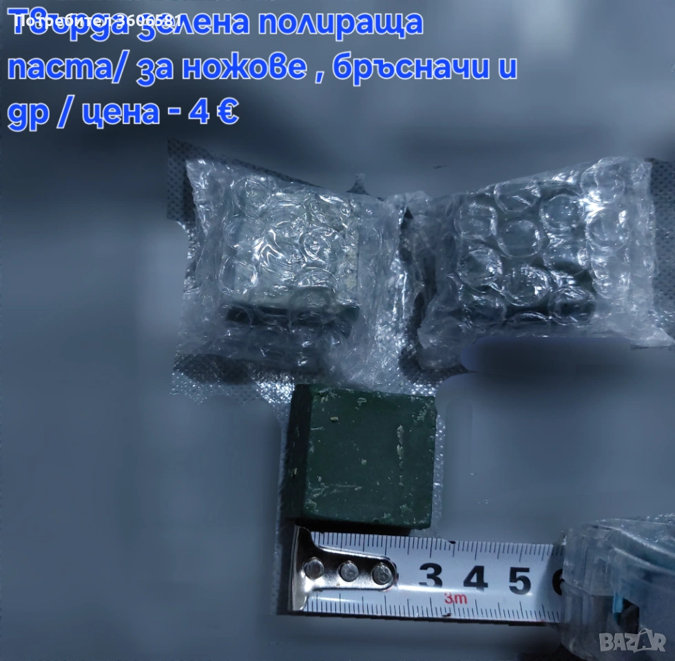 Полираща твърда зелена паста коята спомага за заточването и по скоро ги полира става огледално острието. /За ножове , бръсначи и др /