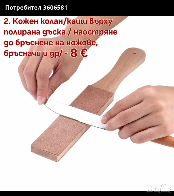 Номер 2. Колан/каиш върху полирана дъска за заточваване и полиране на ножове , ножици , бръсначи и др.