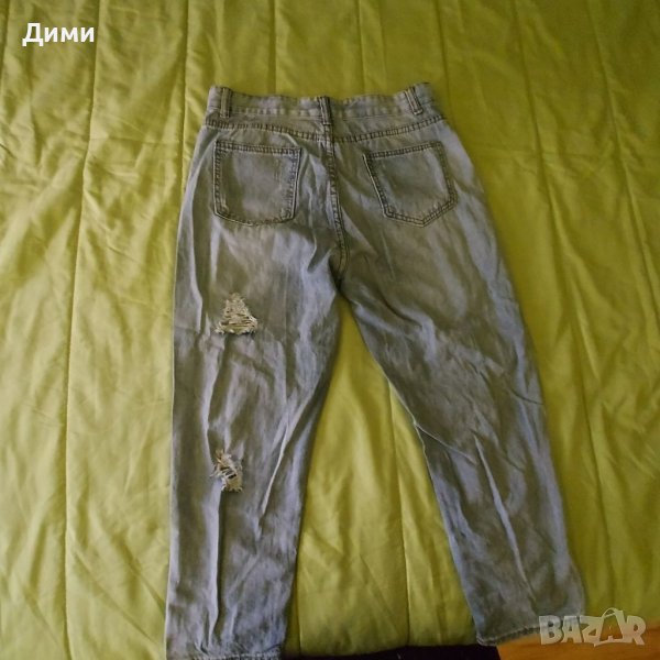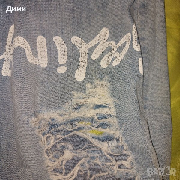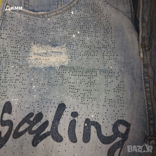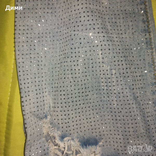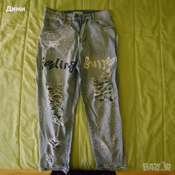 Маркови дънки, закупени от чужбина, с камъчета и надписи, с накъсан ефект, много мека материя, реална цена 100 евро.Размер S-M.