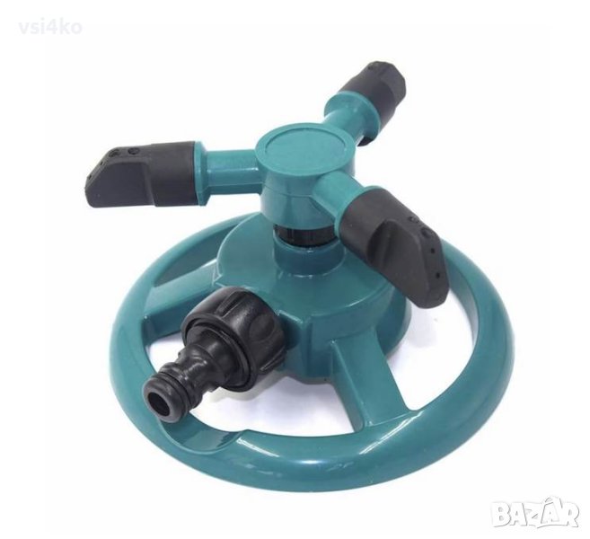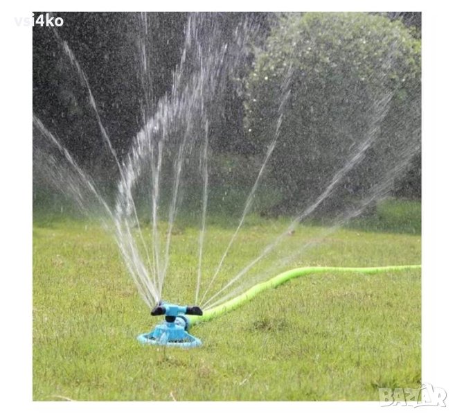 Автоматична, въртяща се градинска пръскачка, оборудвана с три рамена. Здравата основа предпазва спринклера от преобръщане под налягане на водата. Възможност за смяна на режима на работа на всяка дюза независимо (пръскане нагоре или настрани). Много лесен монтаж и работа, изискваща само свързване на маркуча и пускане на водата. Има възможност за свързване на маркуч с накрайник 1/2” и 3.4”.