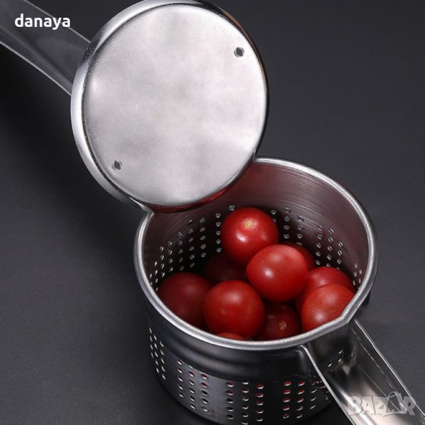 Преса за плодове, зеленчуци, картофи и всякакви други сварени или задушени храни. Тази преса е идеална за приготвяне на крем супи, картофено пюре, плодово пюре, различни сосове, нектари и други. Чудесна е и за приготвяне на бебешки храни за най-най-малките 🙂