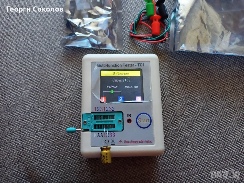 Чисто нов, това е баш оригиналът TC1 последна версия V1.4 - 2023, мери кондензатори до 40000uF, диоди, триоди, термистори, резистори, крушки, определя посоката на светодиодите, всякакви транзистори, Мос фет транзистори, без да се разпояват от платката на устройството!!! Устройството измерва с 2Mhz честота през елемента и дори да има късо в близост по схемата показва дали елемента е здрав и какъв е точно.