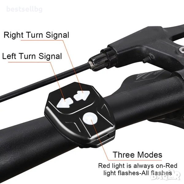 БЕЗЖИЧНО ДИСТАНЦИОННО УПРАВЛЕНИЕ СВЕТЛИНИ ЗА ВЕЛОСИПЕД - Дистанционно управление на задната светлина на велосипеда, за да изпращате сигнали в пет различни режима (постоянна светлина / предупредителна светлина / мигаща светлина /завийте наляво / завийте надясно ), което е лесен за използване бутони на безжичния контролер.