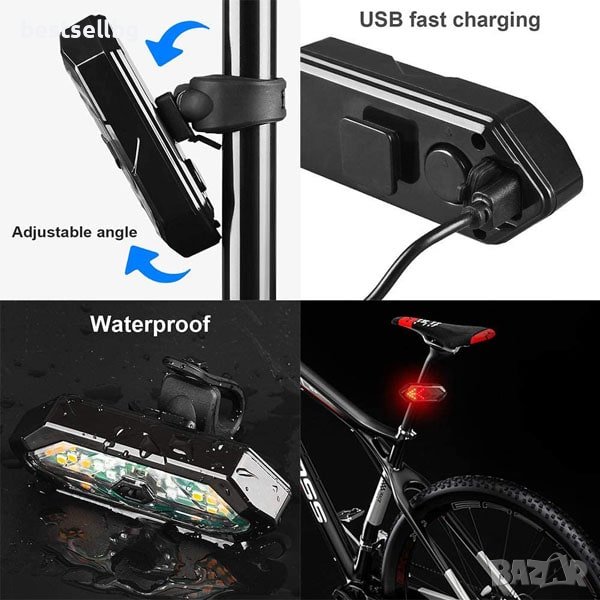 Интелигентна задна светлина за велосипед с мигачи, безжично дистанционно управление, 5 режима, водоустойчива, мощност 80 лумена, видимост над 50метра, подходяща LED задна светлина, предупредителна лампа, USB акумулаторна защитна спирачна светлина за колоездене