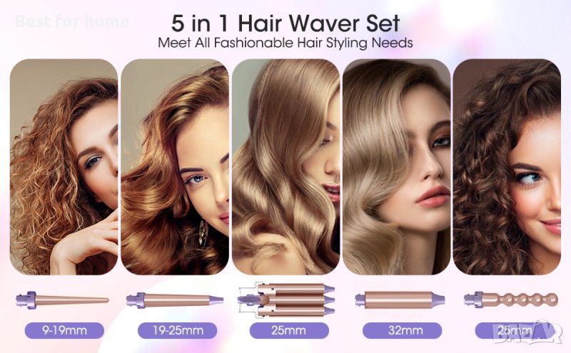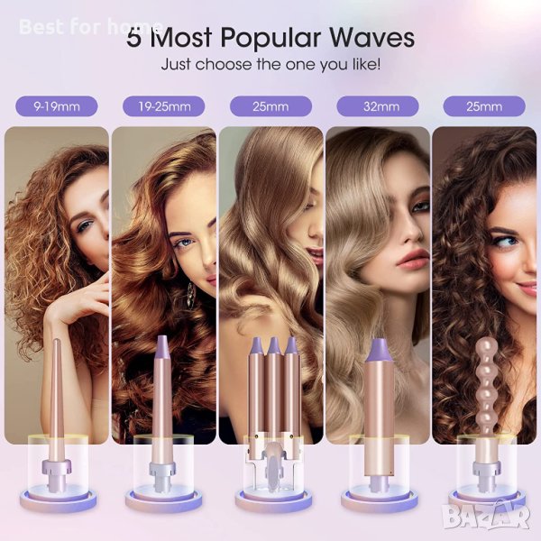 5 в 1 Комплект керамични маши за къдрене Щипки за къдрене,LCD дисплей /80-230°C temp