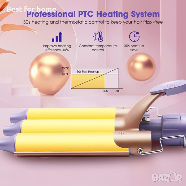 【Загрява бързо и защитава косата ви】 Тази подобрена маша за коса използва PTC технология за нагряване, която се загрява бързо за 60 секунди. Премиум машите за къдрици с турмалиново керамично покритие могат да произвеждат отрицателни йони, за да елиминират накъдрянето и статичното електричество, за да направят топлината равномерно разпределена, да намалят топлинното увреждане на косата ви, да поддържат косата ви къдрава и блестяща за дълго време.