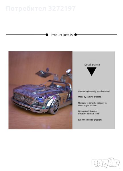 3D метален пъзел Спортна кола - Butterfly Wing -Направи си сам