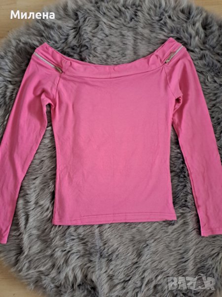 Розова блуза, размер Xs, с паднали рамене и цип. Дължина 35 см., бюст едностранно 32 см. Цена 2 евро.