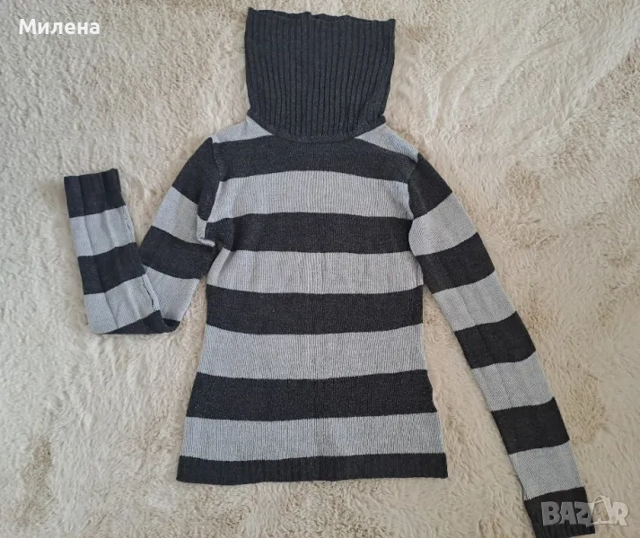 Пуловер в тъмно и светло сиво, размер Xs, бюст измерен едностранно 37 см, дължина 55 см., няма еластичност, 1,50 евро.
