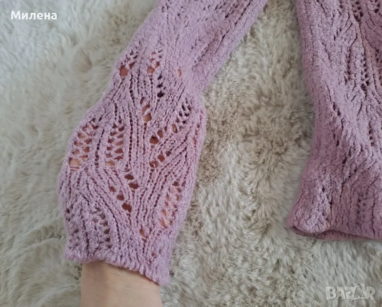 Лилав пуловер, размер Xs/S, дължина от рамото до долу 50 см., бюст едностранно 39 см., лека еластичност. Цена 2 евро.