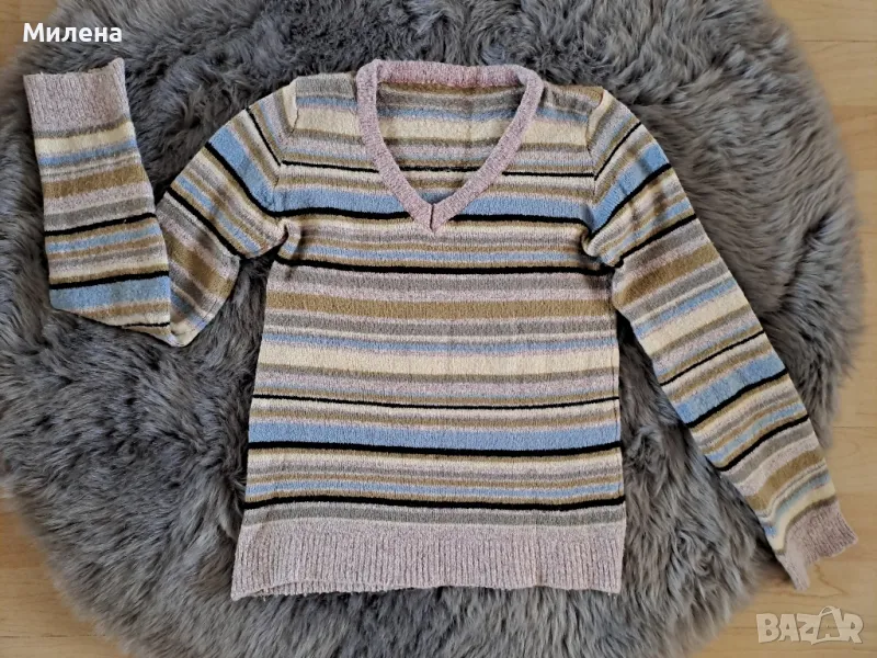 Шарена блуза плетиво, размер Xs, дължина 48 см., бюст измерен едностранно 33 см., еластична е, цена 2,50 евро.