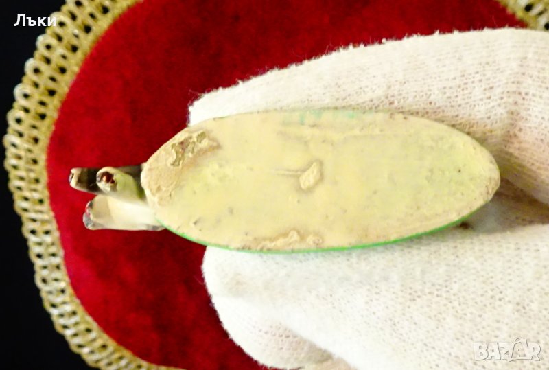 от породата английски сетер.Височина 4 см.,дължина 7 см.,ширина 2 см.