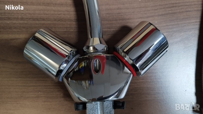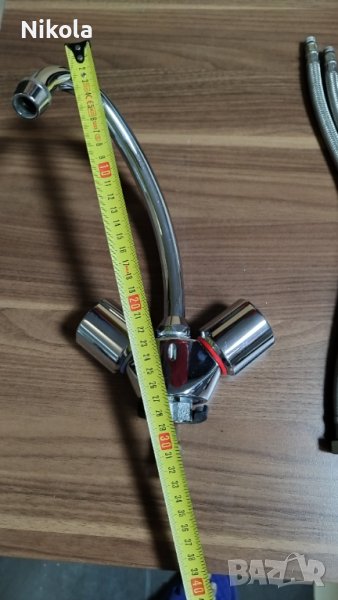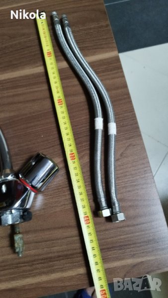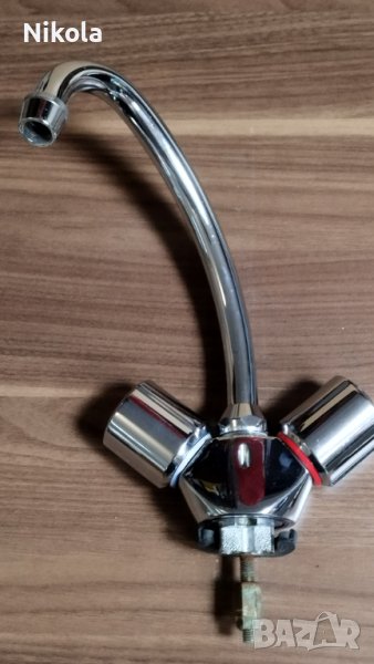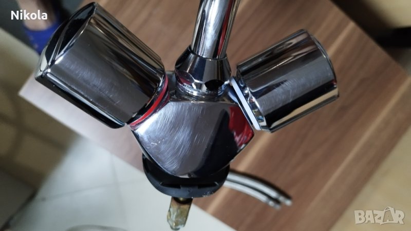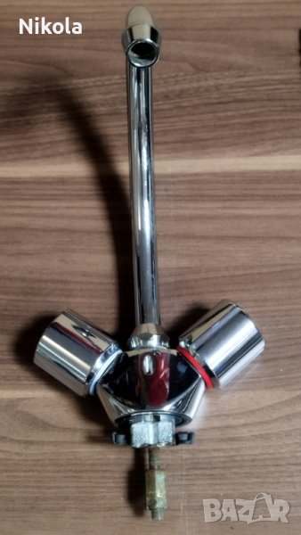 Продавам Батерия - смесител за мивка стоящ с два крана Vidima Ideal Standard, смесителя е използван но е в отлично състояние работи безотказно, към него има и пресъединителни гъвкави връзки дълги около 30см - Подарък. Височината на батерията е около 25см, напред е изнесен около 15см