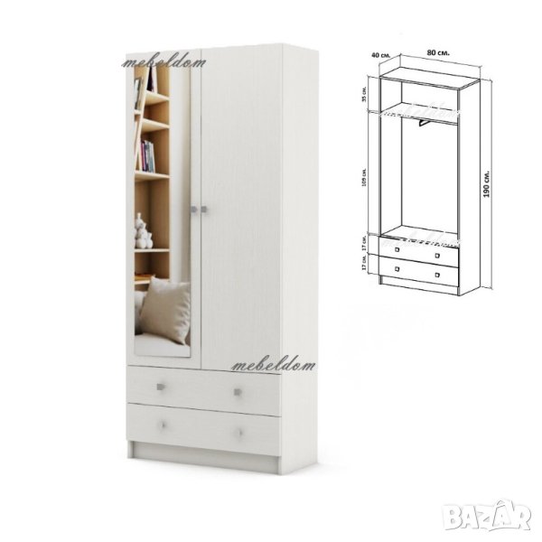 Гардероб двукрилен с изтеглящ лост,рафт,2 чекмеджета и 1 огледало(код-4698)