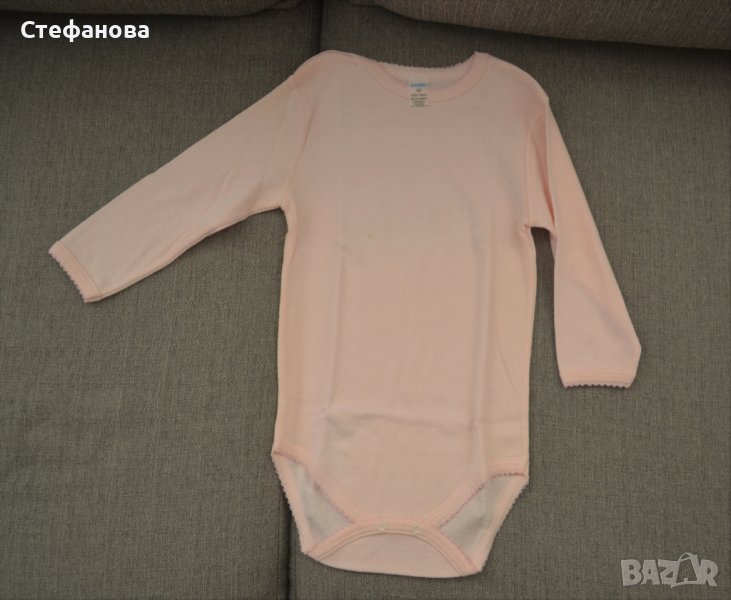 Памучно Бг боди Елипе дълъг ръкав- по етикет размер 30, ръкав-30см, дължина до копченцата - 46см . Има малка точица отпред.