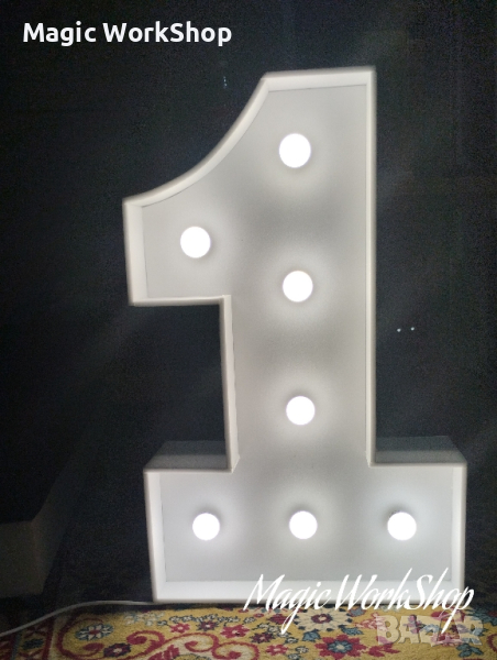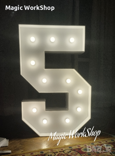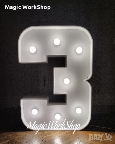 Букви и Цифри с размери приблизително 70 х 120 х 25 см .(зависи от буквата /цифрата ) - Осветителни тела – 10 ~ 12 бр .
