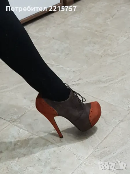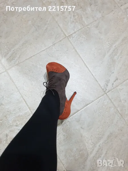 Дамски обувки, пролетно-есенни. От естествен велур. Закупени от Италия. Нови не носени, само пробвани. Токче 15см, под пръстите 4см. Елегантни и много удобни. Размер 38. Цена намалени на 20лв.