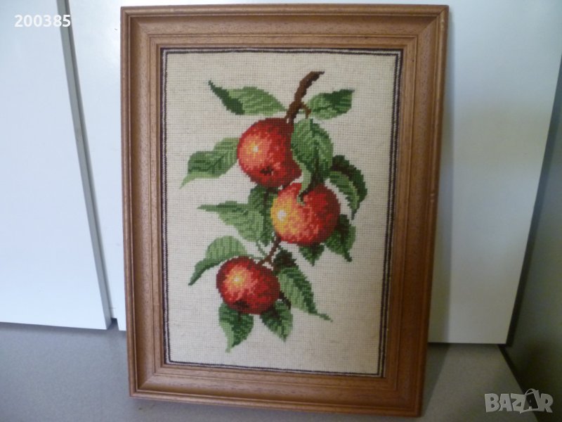 Немски гоблен "Ябълкова клонка". Рамкиран. → Обява 40805855