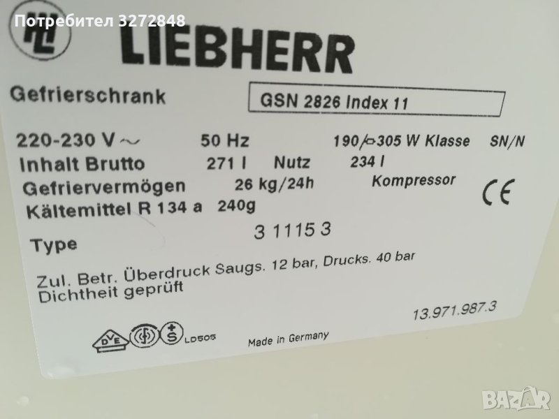 Фризер LIEBHER no frost -271л → Обява 40807923