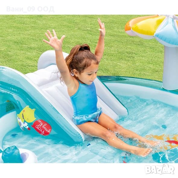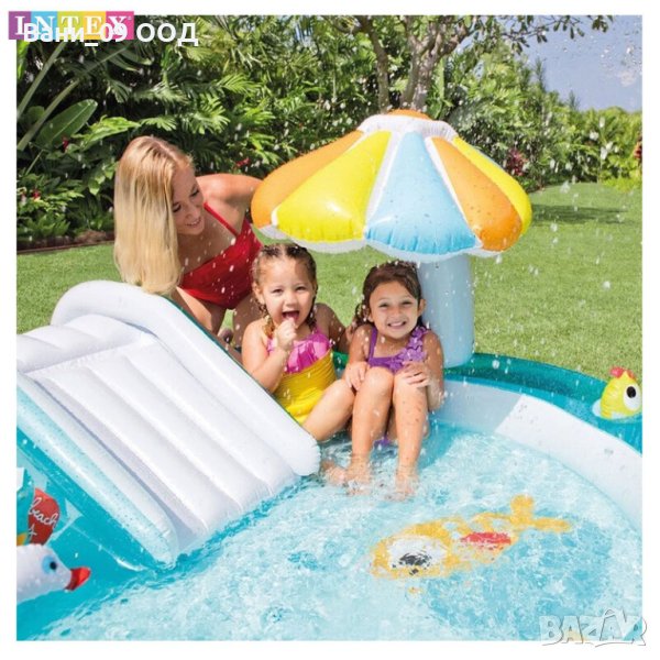 Надуваем детски басейн с пързалка и пръскалка
