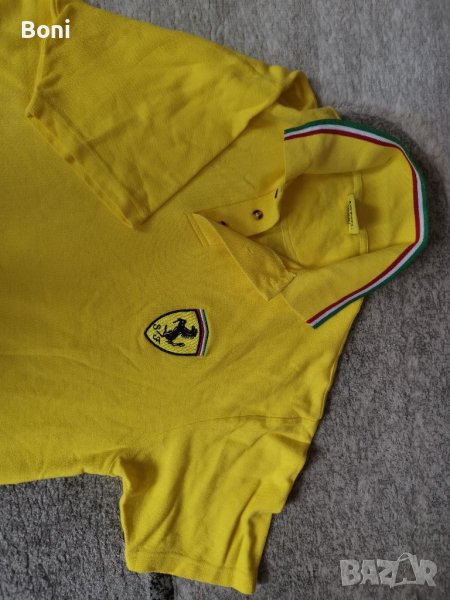 Мъжка оргинална поло риза на Ferrari, жълт цвят пише M размер но отговаря на L. Изпращам навсякъде.